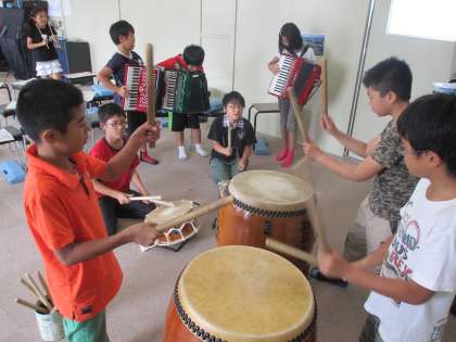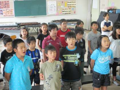 5年生は学年だよりに向けて、歌や合奏の練習をしています。歌は「いつかこの海をこえて」を2パートに分かれ、きれいな歌声で合唱していました。合奏は木琴や太鼓を休み時間も頑張って練習していました。【発信:教務 北風】