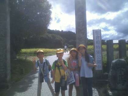 飛鳥駅を降りて欽明天皇陵から石舞台古墳までオリエンテーリングをしました。子ども達は亀石や鬼の雪隠(せっちん)などの史跡を通り、キンモクセイや稲穂などの秋を感じながら歩きました。【発信:教務 北風】