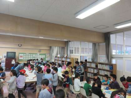 今日から真田山読書週間が始まりました。図書委員の児童が本に関するクイズを作って昼休みの図書館開放の時間に配りました。クイズは低学年用と高学年用にわかれていて、低学年は「怪傑ゾロリ」や「ぐりとぐら」などから、高学年は「バッテリー」や「三国志」などから出題していました。今日は、昼休みに100名を超える児童が図書室に来て、本を読んだり、クイズに答えたりしました。【発信:教務 北風】