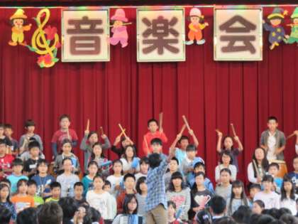 今日は桃陽小学校で天王寺区小学校音楽会がありました。音楽会は天王寺区8校の小学校の代表学年が集まり、合奏や合唱を披露したり全員で歌ったりして交流を深めています。本校は代表で毎年5年生が参加しています。合奏は「饗宴(まつり)」合唱は「ひろい世界へ」をしました。合奏は和太鼓やしめ太鼓・リコーダー・鍵盤ハーモニカ・アコーディオンなどで演奏しました。途中、みんなのかけ声があり太鼓は迫力満点で全員の音が一つにまとまっていました。合唱はソプラノ(高音)・アルト(低音)の二部合唱できれいな歌声で歌うことができました。土曜日の学年だよりでは、同じ曲を発表しますので楽しみにしてください。 【発信:教務 北風】