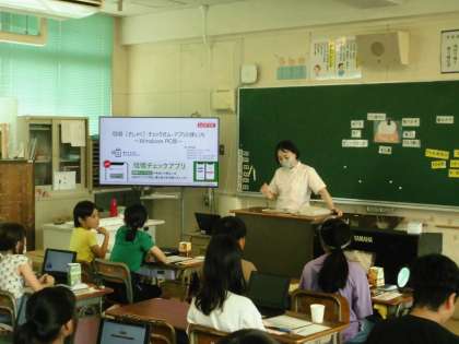 7月4日(木)に4年生の児童を対象に、フッ化物洗口がありました。歯科衛生士さんに来てもらい、歯の健康について学習しました。