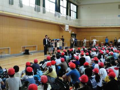 7月29日・30日の2日間、5年生が林間学習としてハチ高原に行ってきます。朝早くから学校に集合し、出発式をしました。楽しみにしていた林間学習にわくわくした様子でした。出発式が始まれば、しっかりと切り替えて、静かに話を聞くことができました。校長先生の話の中でも、聞く態度について褒めてもらいました。その他にも、林間学習の中で、話の聞き方や集団生活のマナーなどを身につけてほしいとお話しがありました。
