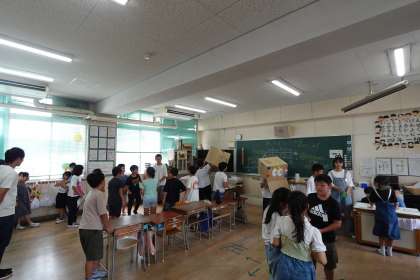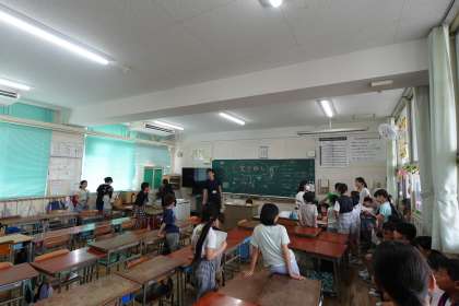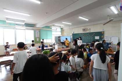 今日まで6年生が中心となってお店の準備を進めてくれました。本番の今日も、店番のメンバーに指示を出したり、遊びに行くときに迷子が出ないように点呼を取ったりと、リーダーシップを発揮していました。頼りになりますね。とても楽しいゲーム集会になりました。