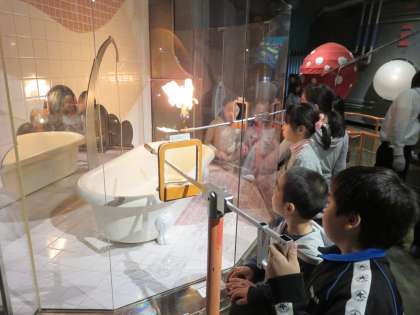 五年生は大阪ガスと明治ヨーグルト館へ社会見学に行きました。大阪ガスのガス科学館では、気体や光、炎の性質を利用した遊びや様々な体験ができました。その後、タンクのある広い施設をバスに乗って回りました。天然ガスが外国から冷やされて液体の状態でタンカーに載せて運ばれることや、働いている人は広い敷地を車や自転車で回ってタンクや機械の点検をしていること、万が一ガスが漏れたときのために、タンクの回りに壁があったり、ガスが空気に触れないように泡を出す設備があったり、何重にも安全対策がされていることなどがわかりました。