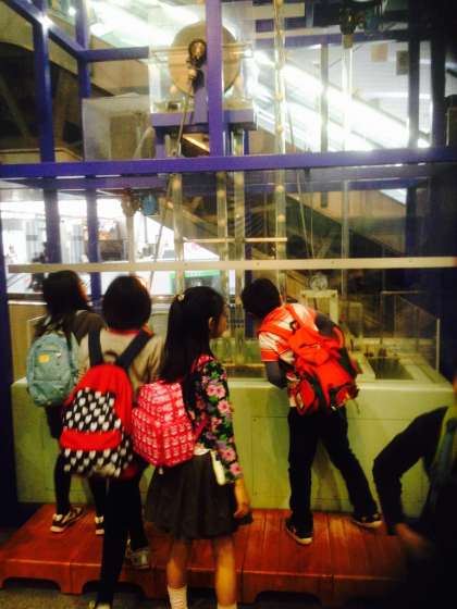4年生は社会見学で大阪市立科学館に行きました。最初に見たプラネタリウムでは、直径26.5mもの大きなドームスクリーンで美しい星空を楽しみました。その後、さまざまな体験をしながら科学や宇宙について楽しく学びました。【発信:教務 北風】