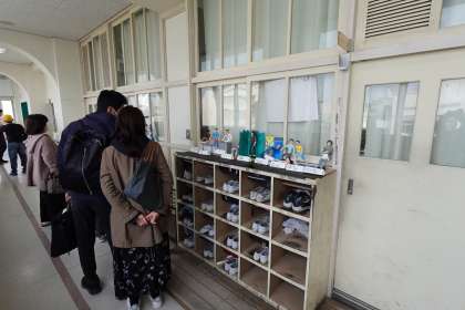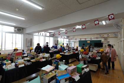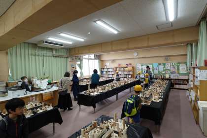 児童の下校後、アートフェス保護者鑑賞会を行いました。今年度は150周年記念ということで、校内全体を使った作品展をしました。また、作品も各学年2作品出展しました。