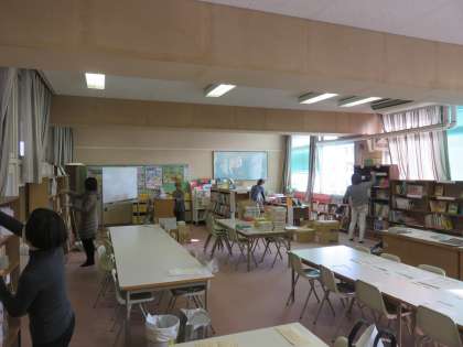 PTA図書館ボランティアの打ち合わせ会がありました。ボランティアの皆さんのご協力で、11月から始めた本のバーコード登録・貼付作業を早く終えることができました。今日はパソコンによる貸出しの作業手順を確認し、図書館の清掃をしていただきました。来週からは図書館開放と本の貸し出しを再開します。【発信:教務 北風】