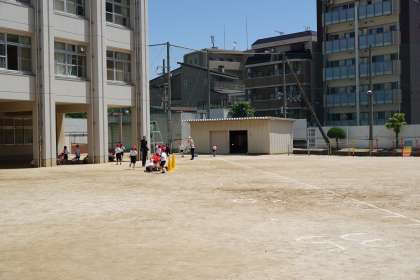 今日は運動場では1年生が、真田山グラウンドでは6年生が体力テストをしました。力いっぱいソフトボールを投げていました。