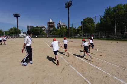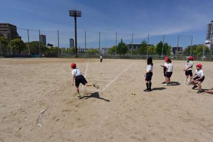 運動場や真田山グラウンドで50m走やソフトボール投げをします。