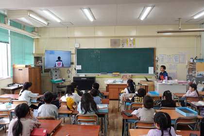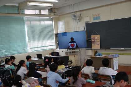 今日はいじめについて考える日でした。校内放送システムを使ったテレビ朝会にて、副校長先生よりお話がありました。