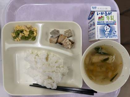 今日は、鶏肉とえんどう(グリンピース)を煮て、最後に卵でとじています。