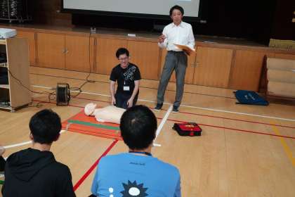 その後、胸骨圧迫やAEDを実際に操作しながら救命処置について理解を深めました。