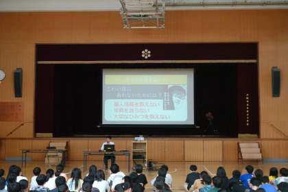 昨日の5年生に引き続き、今日は警察から講師が来てくださって、6年生を対象に【非行防止教室】をしました。