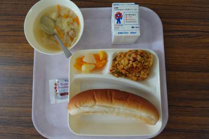 今日の給食のおしむぎのチキンパエリアには【赤ピーマン】が入っています。赤ピーマンは、緑色のピーマンが畑で完全に熟すまで待ってから収穫します。緑色のピーマンと比べると、甘みがあり、体の調子を整えるビタミン類を多く含んでいます。