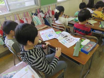 3年生から音楽の学習でリコーダーを練習します。今日は3年3組が音楽の時間に初めてリコーダーを使いました。今日はリコーダーの持ち方やくわえ方などを確認した後、簡単な音を出してみました。子ども達は初めて使うリコーダーに興味津々で、楽しそうに音を出していました。きれいな音が出ると、子ども達は満足そうにしていました。【発信:教務】