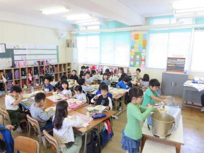 2年4組では、おかわりをする子も多く、1年生の時よりもたくさん食べているようでした。【発信:教務】
