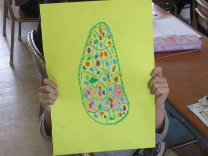 2年3組は2時間目に図工科の学習で「ひみつのたまご」をつくりました。たまごのなかを自分で想像してクレパスでかいていきます。夜空をイメージしたり、虹の模様にしたり、子ども達は形や色を工夫してひみつのたまごを完成させました。【発信:教務】