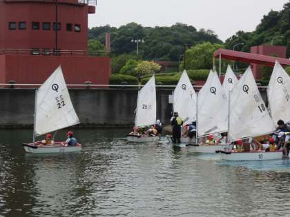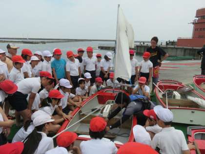 夜から朝まで雨が降りましたが、8時頃には降りやんだのでOPヨットの活動は予定通りできました。みんなでヨットを組み立てて出発!!二人組になり、前の子は帆の向きを変えて速度を調節し、後ろは舵をきって方向を調節します。風を感じながら、気持ち良さそうにすすんでいました。【発信:教務】