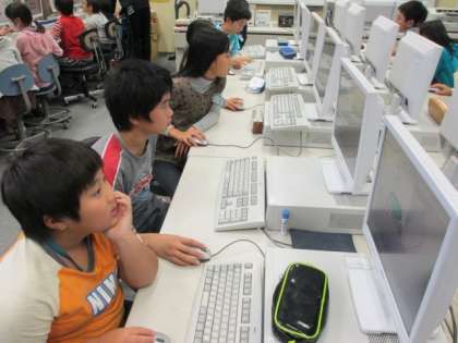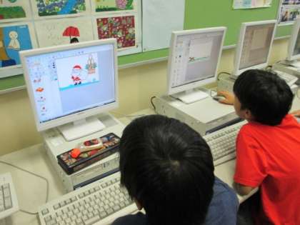 パソコンクラブでは、「冬といえば…」というテーマでキューブペイントを使い、サンタクロースや雪だるまなどの絵をかいていました。