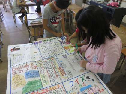 今日の6時間目は委員会がありました。新聞委員会は毎月壁新聞を作成しています。今日は6・7月分の新聞を作成していました。一人ひとりが記事を作成し、みんなの記事を集めて貼り合わせると完成です。毎月、季節に合わせた内容を低学年にもわかるようにふりがなをつけて、ていねいに作っています。6月は梅雨のひみつや父の日の由来などについての記事がありました。1階放送室横の掲示板にありますので、来校の際にはぜひご覧ください。【発信:教務】