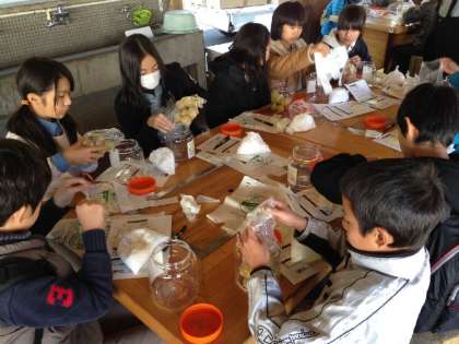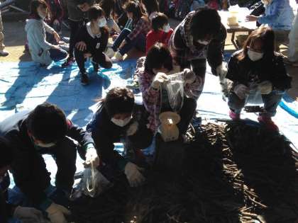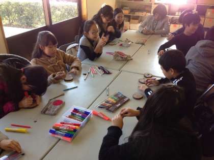 11時すぎに紀州備長炭記念公園に着きました。天候が心配でしたが、いい天気です。お弁当を食べた後、資料館・ウッドペインティング・炭入れ・梅ジュース作りに分かれて体験しました。14時半に千畳敷に向けて出発しました。【発信:教務 北風】