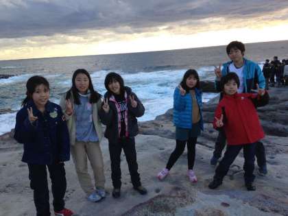 15時半ごろに千畳敷に着きました。岩に打ち寄せる波に迫力があり、夕日もきれいに見えました。【発信:教務 北風】