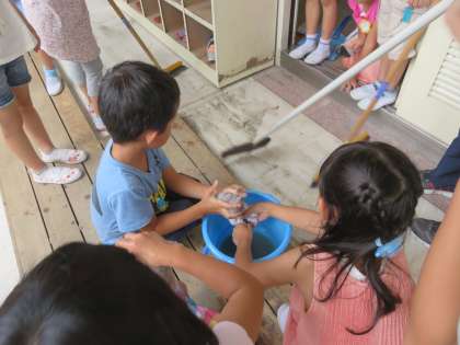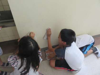 19日は大掃除をしました。子ども達は靴箱の下や壁など、普段はそうじしないところもていねいにしていました。「こんなにごみが出てきた」と子ども達はびっくりしながらも、がんばって掃除をして、1学期の汚れをきれいにすることができました。【発信:教務】