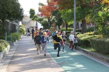 朝の時間に5・6年の子ども達が、真田山公園でランニングをしました。運動を通して、風邪に負けない体力づくりを行っていきます。【発信:教頭 八木】