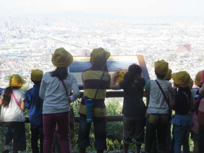2年生は秋の遠足で枚岡公園に行きました。まず、頂上の展望台までみんなで登ってクラス写真を撮りました。展望台では見晴らしがよく、あべのハルカスまで見えました。お弁当を食べた後は、すべり台などの遊具で遊んだり、どんぐりを拾ったりしました。天気もよく少し暑かったですが、子ども達は楽しく過ごすことができました。【発信:教務】