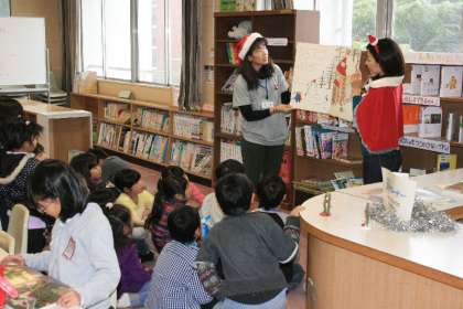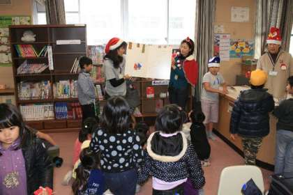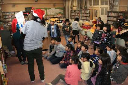 放課後に図書館ボランティアさんによる「クリスマス読み聞かせ」を行いました。ボランティアさんは衣装や飾りなどを工夫して、クリスマスの雰囲気を演出してくれていました。そんな中で子ども達は楽しそうに読み聞かせを聞いていました。【発信:教頭 八木】
