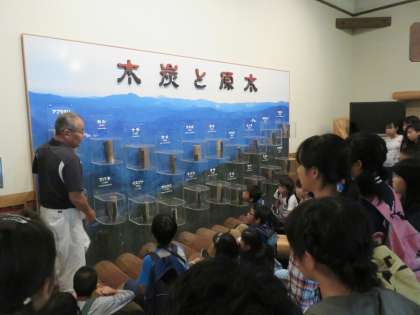 博物館では備長炭の歴史や作り方などを学び、窯では実際に窯で出来上がった備長炭を出す体験をしています。【発信:教務】