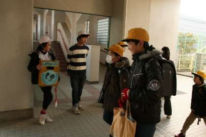 今日から3日間、代表委員の子ども達が中心となってユニセフ募金活動を行います。今朝も代表委員の子ども達は、募金箱を持って、がんばって活動していました。【発信:教頭 八木】