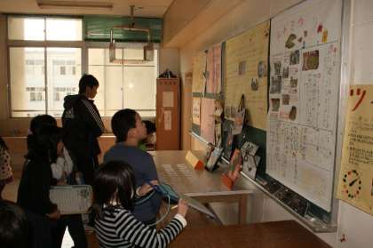 15日(土)と今日の2日間、図工室でクラブ展示を行いました。料理・手芸クラブ、読書クラブ、科学クラブ、ゲームクラブ、まんがクラブ、アートクラブ、世界文化クラブの子ども達が作った作品や壁新聞などを展示しました。最終日の今日は、各学年が時間を決めて、子どもたちが展示物をみました。【発信:教頭 八木】