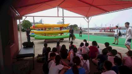 午後からは、クラスごとに分かれて、カッター・カヌー・石ころアートの活動をしました。