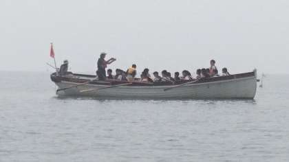 カッターでは、6mカッターと9mカッターに乗り込み、協力してオールを漕ぎました。