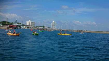 カヌーでは、最初にパドルの使い方を教えていただいてから、2人乗りのカヌーに乗りました。