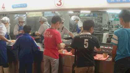 チキンライス・コロッケなどの昼食を食べた後、部屋のそうじと片づけをしました。