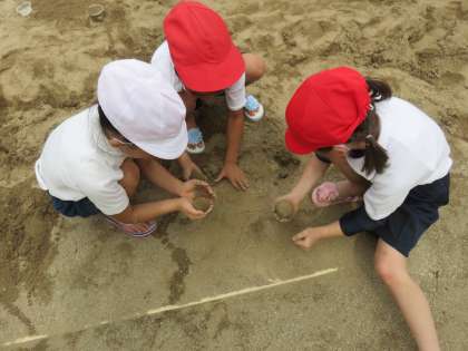「きれいなボールがつくれたよ」「川をつくって水を流すんだ」「トンネルも作ってみよう」・・・思い浮かんだものを作っている子どもたちの顔は、とても生き生きとしていました。