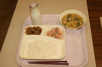 今日で今年度の給食が終了しました。今日の献立は、さけの香味焼き・みそ汁・きんぴらごぼう・ごはん・牛乳でした。写真は給食中・給食後の3年生の様子です。【発信:教頭 八木】