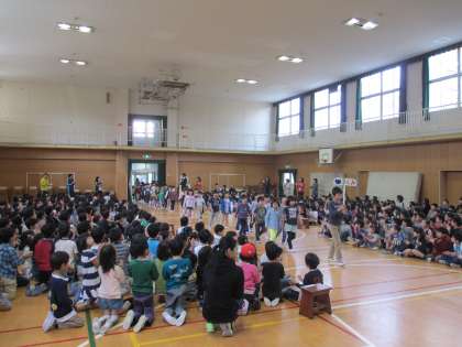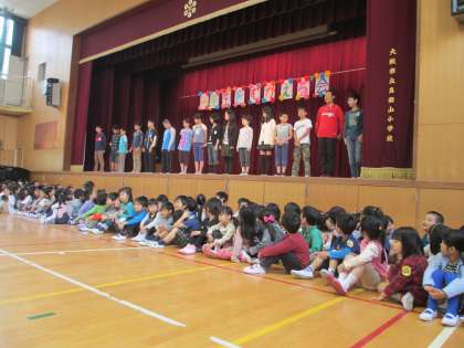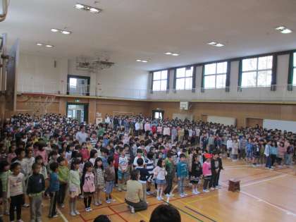 1年生を迎える会がありました。入学式に出席した2年生以外の学年にとっては、1年生と初めての対面でした。昨年度の代表委員会が中心になって、準備や司会進行をし、各学年が「お祝いのことば」を言ったり、校歌を歌ったりして1年生の入学を祝いました。【発信:教務 北風】