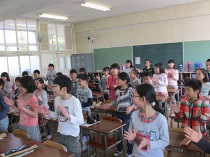 4年生が初めて音楽の授業をしました。3年生までに習った歌やリコーダーも上手でしたが、声の出し方や姿勢を勉強すると教室いっぱいにきれいな歌声がひびき、気持ちよかったです。これからが楽しみな4年生です!【発信:小川】