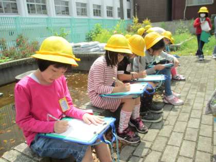 3年生は理科で、春の野草・花の学習をしています。今日は、3年1組が4時間目に学習園に行って、オオイヌノフグリ・カタバミ・スイセンなどを見つけて観察していました。【発信:教務 北風】
