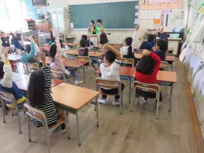 初日の今日は、昼のぐんぐんの時間に、健康委員会の児童が1〜3年生の教室に行き、健康調べをしました。