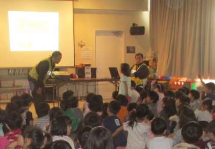 天王寺区役所安全パトロールの方に、交通安全などについて話をしていただきました。しっかりと話を聞くことができました。また、危険から身を守るための5つの約束を、安全パトロールの方としました。【発信:教頭 山口】