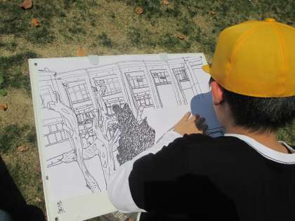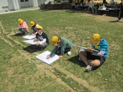 6年生は図工科の学習で校舎の写生をしています。子ども達は校舎をじっくり見ながらていねいに描いていました。できあがりは土曜授業で見てください。【発信:教務 北風】