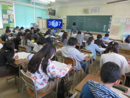 子どもたちは集中しながら、1つ1つの問題に取り組んでいました。手ごたえを聞いてみると、「全部、問題を解いたけど、むずかしかった。」「どれだけ正解しているか楽しみ。」との声や、「すごくむずかしかった。」「これからの勉強をがんばる。」などの感想がありました。