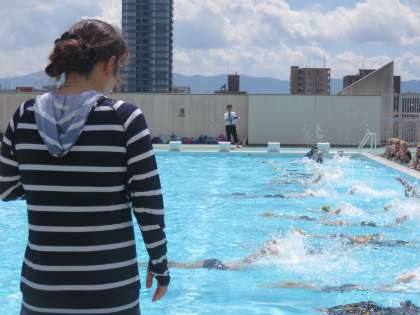 けのびでは姿勢を確認した後、しっかり伸びて浮くことができていました。ばた足では、ももの付け根から足を曲げないで動かすことを意識しながら泳いでいました。
