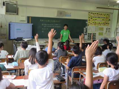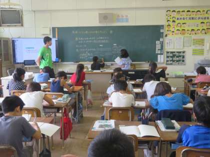 子どもたちは90÷20の答えは「4あまり1?」「4あまり10?]どっちが正しいのか、自分たちの意見を一生懸命に発表していました。
