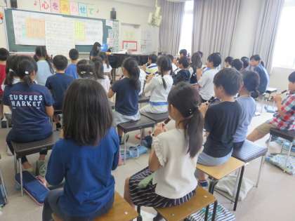 4年生は音楽の学習で歌とリコーダーの練習をしていました。