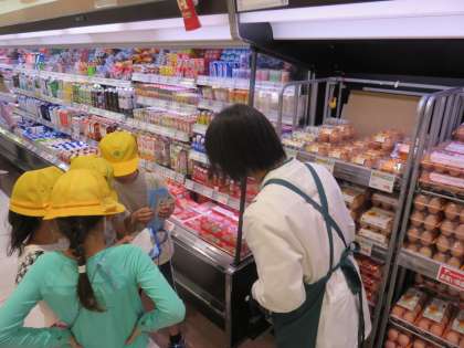 今日は校区内にある“デイリーカナート イズミヤ”へ社会見学に行きました。そこでは、お店のバックヤードや食品売り場を見学したり、お店の人にインタビューしたりしながら、ワークシートにたくさん記録をとっていました。また、今回はタブレットを活用し、お店に並んでいる商品の様子などの撮影にもチャレンジしました。